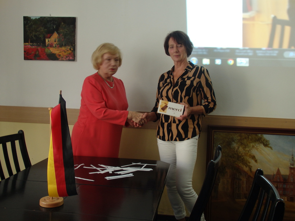 Mitglieder unseres Vereins interessieren sich ständig für die Gesichte und Kultur Deutschlands. Traditionell, wenn der 3.Oktober – also der Jahrestag der Deutschen Einheit naht, veranstalten wir jedes Jahr einen Wettbewerb über Deutschland. Dieses Jahr am Wettbewerb haben 6 Personen teilgenommen. Unter diesen Personen war sogar ein Gast aus Deutschland, der an diesem Tag den Sitz des Vereins besuchte. Die Teilnehmer wählten 3 Fragen aus verschiedenen Bereichen.