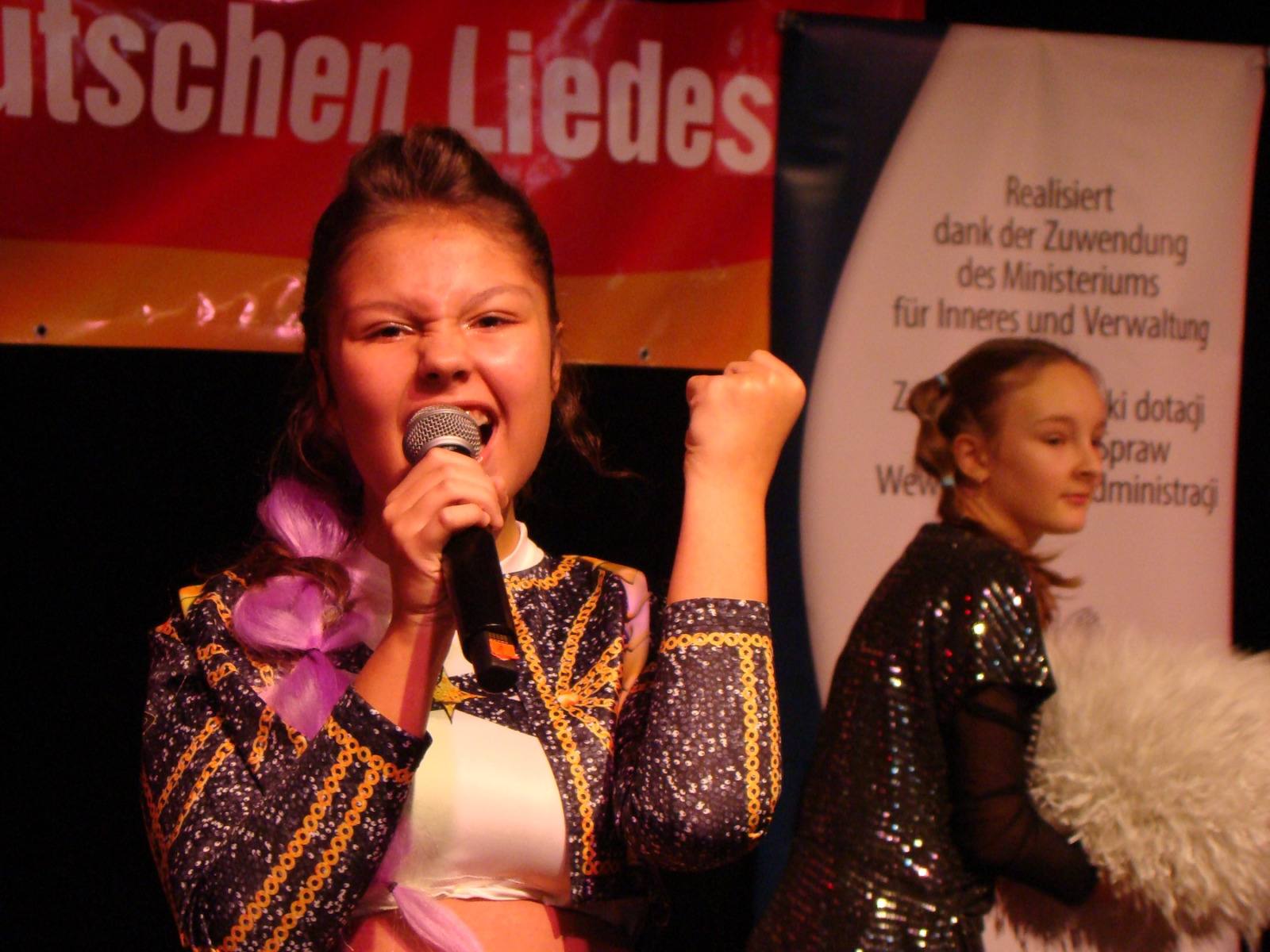 – Die Kinder singen nicht nur, sondern spielen voller Hingebung beim Singen, und darüber hinaus haben viele von ihnen sehr gut passende szenische Kostüme. Wenn es so weitergeht, müssen wir außer der Alterskategorie noch eine Kategorie einführen: deutsche Schauspiellieder, scherzte sie, aber wer weiß…